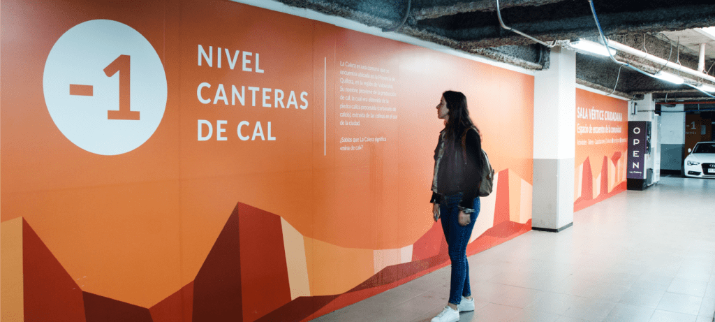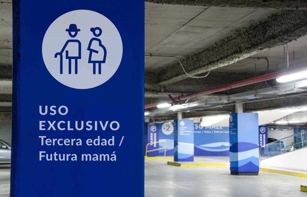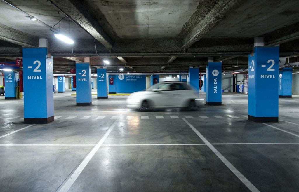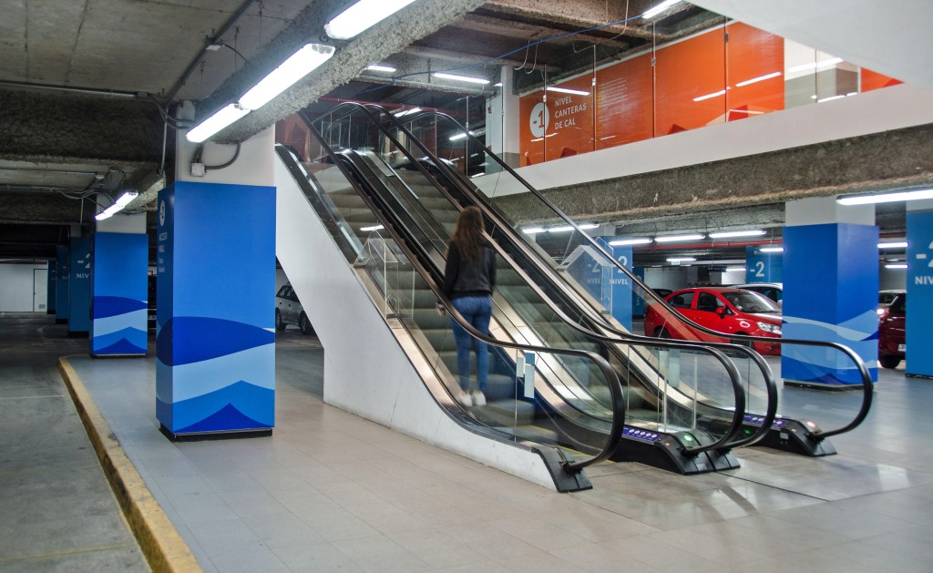 Para esto creamos patrones gráficos basados en el entorno natural de la zona como el río Aconcagua y las canteras de Cal, los que fueron aplicados para sectorizar los estacionamientos, asignándoles un color y una textura a cada nivel, de forma de potenciar la orientación de los visitantes.