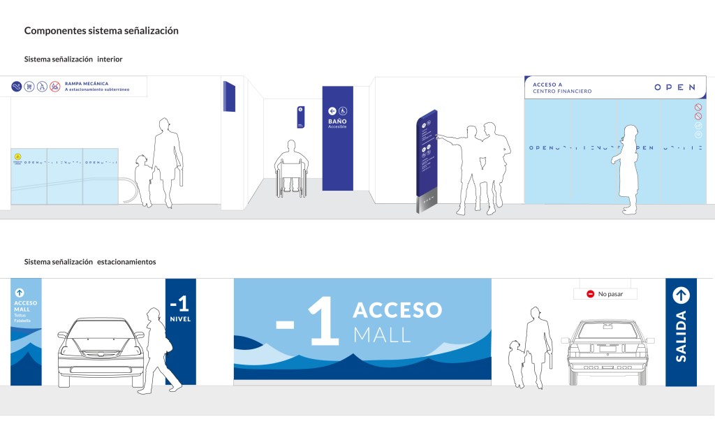 Dándole continuidad al proyecto que diseñamos en Open Kennedy, luego nos encargamos de desarrollar el sistema de señalización para los 50.000 metros cuadrados de Open La Calera, en Valparaíso, con el fin de reflejar el espíritu de este lugar en particular.