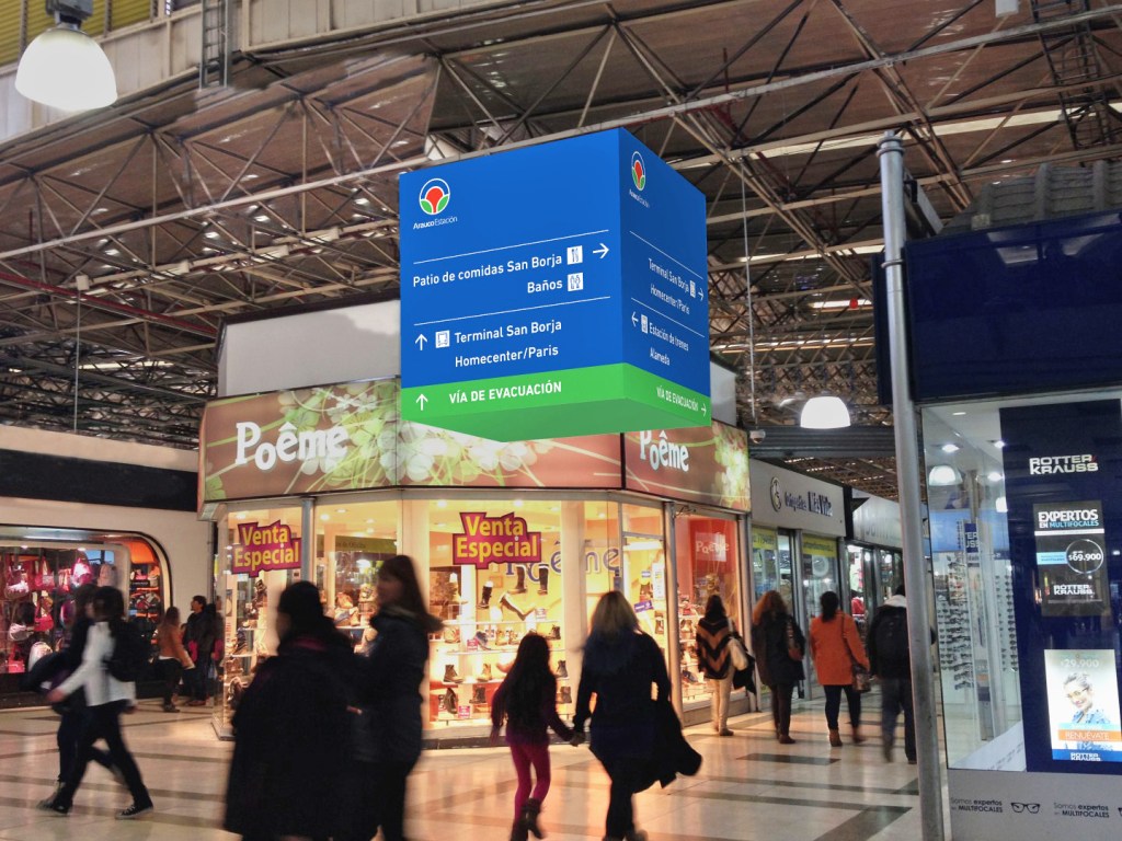 Arauco Estación es un mall que se encuentra en un punto de transbordo de pasajeros entre el terminal de buses San Borja (alojado al interior del mall), la Estación Central de Trenes y el metro de Santiago, espacio que también se emplaza en una zona de mucho comercio, por lo que nuestro desafío consistió en brindar información eficiente en un contexto de alto tráfico de personas, las que además cuentan con diferentes necesidades comunicacionales (diversas edades, orígenes, etc).