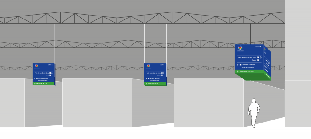 Optamos por ‘limpiar’ visualmente el lugar, priorizando señales grandes y visibles que contienen información precisa y directa, e incorporando los colores y la gráfica de Arauco estación con el fin de que los usuarios puedan reconocerlas fácilmente y así desplazarse sin dificultad por el recinto.