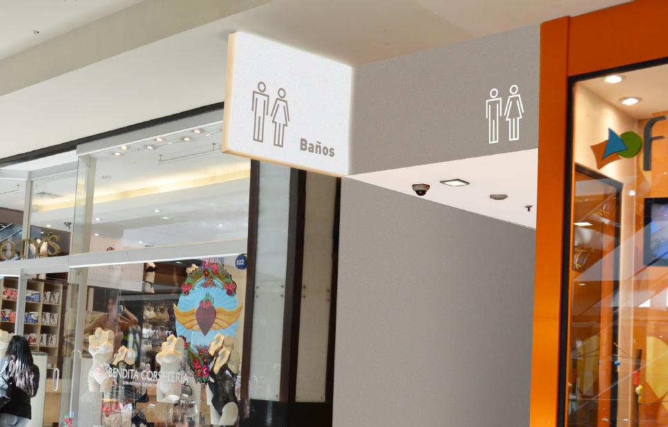 Posteriormente realizamos una propuesta de diseño que mejora el sistema de señalización y la experiencia de los visitantes: desarrollamos una estrategia de ‘naming’ que identifica los distintos accesos y los relaciona con el interior del mall, además de una nueva línea gráfica y de soportes.