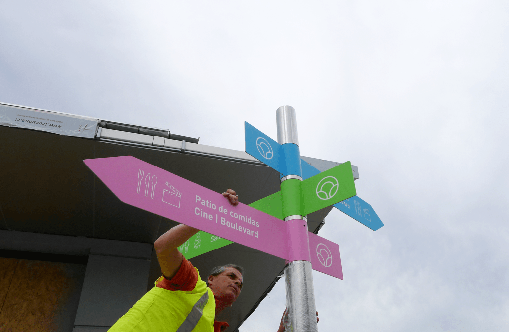 Desarrollamos un sistema de señalética compuesto por más de 60 pictogramas para el centro comercial Open Plaza, los que fueron diseñados especialmente para funcionar en conjunto con la tipografía ‘Lato’ -definida para este proyecto- la cual posee trazos híbridos, que combinan terminaciones curvas y rectas. Este rasgo particular, sumado a la incorporación de elementos que le entreguen personalidad a cada ícono, dota al sistema de un carácter contemporáneo y cercano.